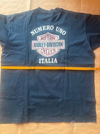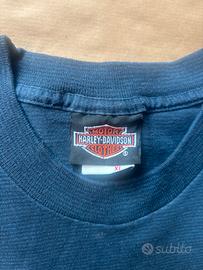 Tshirt Harley Davidson. Taglia XL Usata poco Larga 60cm circa Altezza 75 cm Colore blu, con motivoeggere linee orizzontali. 75% cotone, 25% poliestere Logo sul fronte 25x16 cm circa Logo sul retro 26x23cm circa