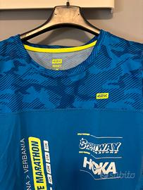 Maglietta tecnica nuova donna blu e gialla nuova Hoka taglia m New Hoka women's blue and yellow technical shirt, size M