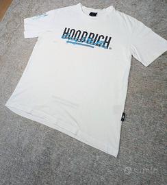Maglietta bianca a maniche corte, taglia M, in ottime condizioni. Stampa frontale con logo “HOODRICH” in nero e azzurro effetto graffiti, molto stilosa e streetwear. Tessuto morbido e comodo da indossare, perfetta per outfit casual o sportivi. Indossata poche volte, senza difetti evidenti. 📏 Vestibilità regolare 🎨 Colore: bianco con stampa nera e azzurra 🧼 Lavata e pronta all’uso