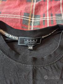 Vendo bellissima maglietta Iuter taglia Xs. Misure in foto. Colore nero con stampa. Molto bella e stilosa. Non ha segni di usura. Casa non fumatori. Vendo causa inutilizzo.