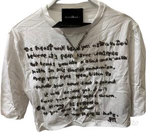 Questa maglietta John Richmond è realizzata in jersey di cotone, presenta girocollo, maniche corte, orlo dritto e una silhouette corta. Il design è rifinito con maglie a catena e dettagli impreziositi nuova