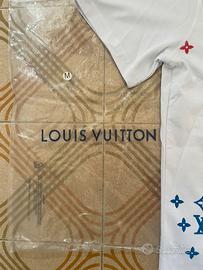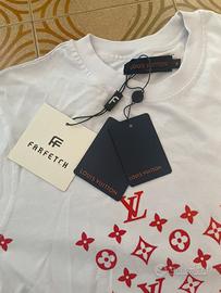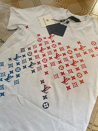 maglietta louis vuitton bianca con stampe rosse e blu, taglia M, nuova con cartellino, PREZZO TRATTABILE