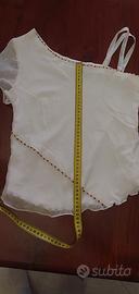 Capo molto versatile, adatto sia di giorno che di sera, con particolare giro di perline. Tessuto fresco e di ottima vestibilità. Indossata molto poco.