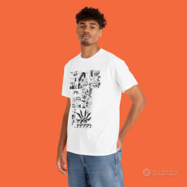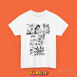 Sul fronte della t-shirt è raffigurata un’immagine iconica di Hinata mentre lancia il suo pugno deciso verso Pain, con il volto segnato dalla determinazione e dal sentimento.