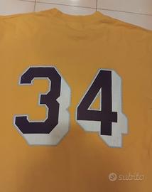 Taglia XL adulto, stampa fronte retro del nome squadra e del numero #34 di Shaquille Shaq O'Neal, logo sponsor tecnico e logo NBA ricamati sul fronte.