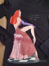 Maglietta maniche lunghe nera Iceberg con Jessica Rabbit. Stampa perfetta. Cotone ottimo