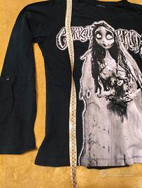 Magliette in cotone nera, La sposa cadavere, taglia M. Praticamente nuova. Indossata una volta. Maniche arricciabili con bottone di chiusura.