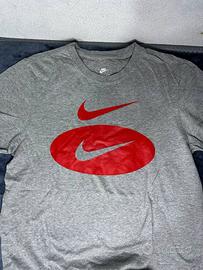 Maglietta Nike Grigia con Logo Rosso