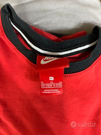Maglietta Nike, taglia XL 158-170 cm (corrispondente ad una XS da uomo), colore rossa e nera, in ottime condizioni.