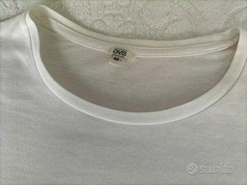 maglietta vintage taglia Xs ma veste M colore bianco con disegno e spacchetti laterali.