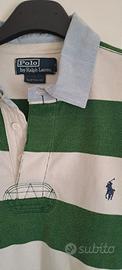 Vendo maglietta polo maniche lunghe, colore verde e bianco, custom fit, taglia L, 100% cotone pesante
