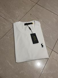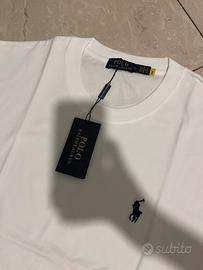 Vendo splendida t-shirt a maniche corte Polo Ralph Lauren, un evergreen assoluto che non può mancare nel guardaroba maschile. Il capo è in un bianco ottico brillante, perfetto per la stagione estiva o come sottogiacca raffinato. Realizzata in cotone di altissima qualità, la maglia offre una mano morbida, fresca e traspirante, garantendo il massimo comfort per tutto il giorno. Sul petto spicca l’iconico logo del "Pony" ricamato a contrasto in nero, simbolo di stile ed eleganza senza tempo. La vestibilità è regolare (Regular Fit), ideale per chi cerca un look pulito ma rilassato. Come visibile in foto, l’articolo è nuovo, mai indossato e completo di cartellino originale, assolutamente privo di difetti, macchie o segni di usura. Un pezzo basic di lusso, versatile e pronto per essere spedito con la massima cura. • Brand: Polo Ralph Lauren • Taglia: L (controllare etichetta in foto) • Colore: Bianco con logo nero • Condizioni: 10/10 - Nuova con etichetta • Composizione: 100% Cotone