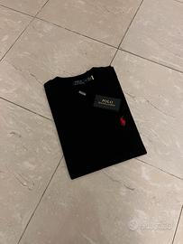Vendo t-shirt Polo Ralph Lauren, colore nero con l'iconico logo del giocatore di polo ricamato in rosso a contrasto sul petto. Il capo è nuovo con cartellino, mai indossato e in condizioni impeccabili, come visibile dalle foto. Realizzata in cotone di alta qualità, offre una vestibilità Regular Fit molto confortevole e versatile per ogni outfit. La taglia è una M, ideale sia per un look casual che per uno stile più curato sotto una giacca. Spedizione rapida e massima serietà garantita per questo classico intramontabile del guardaroba maschile.