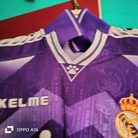 Vendo splendida maglia da trasferta del Real Madrid stagione 1996/97, colore viola con dettagli bianchi, sponsor Teka e marchio tecnico Kelme. Design iconico con trama jacquard e impronte di zampa, simbolo Kelme, e stemma del Real Madrid cucito. Maglia originale, Made in Spain, rarissima da trovare in queste condizioni. đ Chi la indossava: Questa maglia Ăš stata indossata da leggende come: RaĂșl GonzĂĄlez Fernando Hierro Davor Ć uker Clarence Seedorf Predrag MijatoviÄ Roberto Carlos (stagione del debutto!) âïž Match storici con questa maglia: Utilizzata nelle partite di Liga e Copa del Rey in trasferta. In particolare, fu indossata in alcune sfide contro rivali storici come il Barcellona, AtlĂ©tico Madrid e Deportivo La Coruña.