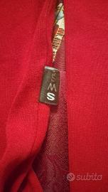 Vendo maglia a maniche lunghe color rosso acceso/ciliegia, perfetta per la stagione autunno/inverno o per un look casual a strati. Il tessuto è leggero e confortevole, con un dettaglio particolare sullo scollo (leggermente arricciato/mock neck).