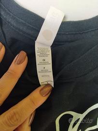 Vendo maglietta nera sagomata con stampa bambini stilizzati.