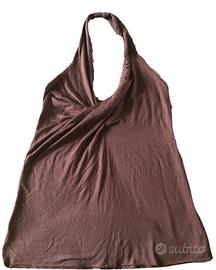 Caratteristiche: top con scollo all'americana, metà delle schiena rimane scoperta. Davanti lo scollo scende dolcemente, formando un incrocio. Il tessuto è doppio e l'orlo è fine.