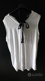 Maglietta bianca con la scritta Forever in nero e dietro piccolo laccetto estetico. Misure: Lunghezza davanti circa 68cm, dietro circa 75cm. Larghezza tra maniche sopra circa 41cm e sotto circa 51cm
