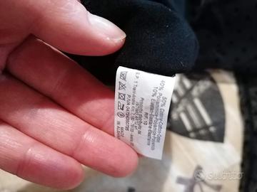 Nuovissima, mai indossata. Con carré e maniche trasparenti con fantasia pois. In misto cotone. Misure e composizione in foto.