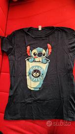 T-shirt Pampling con una stampa di Stitch della Disney. 100% cotone, misura XL donna (veste come una S-M in realtà,). è lunga 60 cm in totale, e in vita sono circa 43 cm. Verrà consegnata lavata e stirata. Lo sfondo è blu scuro. Consegna a mano a Milano o Torino.