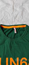 Sulla manica sinistra troviamo un' altra stampa con una scritta FLUO in arancione. Girocollo confortevole di colore verde ne troppo largo ne stretto. Maglietta di taglia 14 anni,in cotone,con una vestibilità perfetta per chi porta 14 anni come taglia.