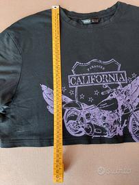 Maglietta corta in cotone Shein nera e viola. Taglia M - misure in foto. Adatta per la palestra o per il tempo libero.