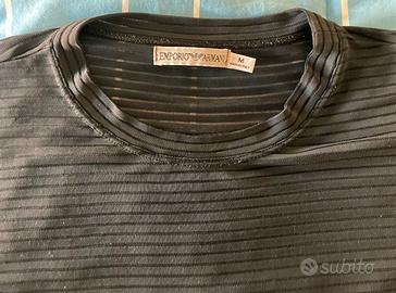 Vendo maglietta t-shirt Emporio Armani, colore nero, misura M, vestibilità larga e comoda, in perfette condizioni e senza difetti, larghezza al petto 55 cm lunghezza dal collo al fondo 59 cm, maglia da vero Paninaro.