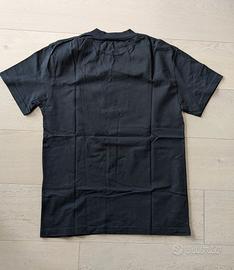 maglietta girocollo maniche corte colore nero 100% cotone taglia L spalle 48 torace 53 lunghezza 74 piccola imperfezione sulla scritta sul petto