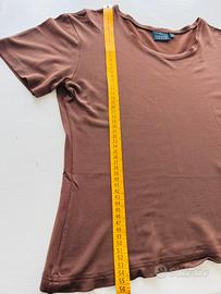 Maglietta Trussardi Jeans taglia L, color marrone/tabacco, in viscosa. Usata qualche volta ma in ottimo stato. Ulteriori misure in foto. Zona Cinecittà Don Bosco