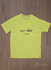 Maglietta tecnica running Under Armour gialla fluo, modello The Streaker Tee, taglia M (fit aderente).