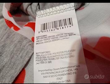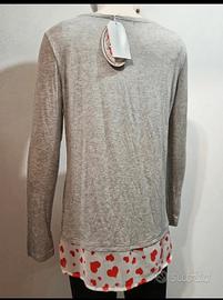 Maglia in *viscosa e poliestere* Nuova, mai usata, ancora con l’etichetta. Idealissima per la primavera, versatile e facile da abbinare con jeans o leggings! Lungheza 68 Ascella 48 Manica lunghezza 57 cm Non segna la tg ma può vestire M/L Elasticizzato