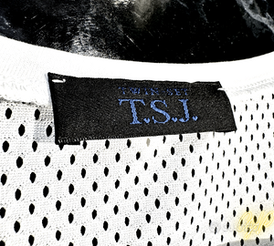 Elegante t-shirt Twin Set bianca Donna, decorata con fori incorniciati in metallo e perle nere sul davanti, traforata e traspirante sul retro