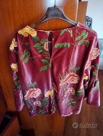 Maglietta Vicolo con un bellissimo ricamo floreale su sfondo rosa. - Tessuto in velluto morbido. - Maniche a campana. - Dettagli ricamati di rose e foglie verdi.