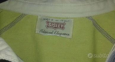 cedesi una MAGLIA A MANICHE CORTE ORIGINALE VINTAGE SISLEY MADE IN ITALY SERIE RELAXED ELEGANCE. COLORE A RIGHE VERDE VIOLA. 100% cotone. Taglia L-M