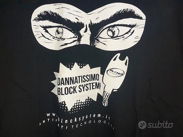 PER INUTILIZZO mai indossata, CEDESI UNA T SHIRT NERA BLACK EYES FACE OCCHIO STILE FUMETTI, PROMO GADGET TSHIRT ANTIFURTO AUTO BLOCK SYTEM. TAGLIA MEDIUM. COME FOTO