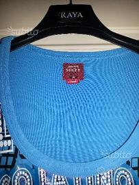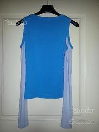 Una Maglietta NUOVA,Da Donna/Ragazza,VINTAGE (L'HO COMPRATA 15/17 ANNI FA MA è NUOVA NON L'HO MAI USATA),Con Le Maniche Lunghe e Apertura Sulle Spalle (come si vede nelle foto),Con Ampio Scollo Ma Non Volgare (non risulta troppo basso o profondo),INDOSSATA STà BENISSIMO PERCHè L'HO ACQUISTATA CON MIA CUGINA E LEI L'HA PRESA UGUALE MA NEL COLORE ROSA/FUCSIA E STà BENISSIMO INDOSSATA,Maglietta Elasticizzata,Di Colore Azzurro Turchese Chiaro Sulle Maniche e Più Scuro Sul Resto Della Maglia e Con Stampa Colorata Con Scritte Fucsia,Viola,Nero Solo Davanti,Originale Marca "MISS SIXTY",Taglia M (Medium),In Cotone,Maglietta NUOVA,Molto Bella e Molto Particolare,VINTAGE,Nuova Ma Mai Usata,Perfetta,Senza Nessun Difetto.