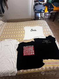 Vendo magliette con diverse fantasie terranova, taglia prima maglietta”break the rules” XS, taglia seconda maglietta fab sister M, taglia terza maglietta L e taglia quarta maglietta “Sea” M. Vendo per inutilizzo conservate in condizioni ottime per info contattatemi su subito.