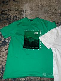 Magliette T-Shirt usate veramente pochissimo vendo perché taglie troppo grandi, comprate a 30€ l’una, quelle Pushin’ sono XL, quella The North Face verde è L. Vendo a 12€ per maglietta