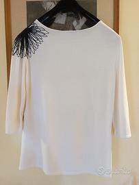 I prezzi variano. 2 foto: Maglione in un colore interessante, 100% cotone mercerizzato, n. 48 (it), nuovo. Prezzo: 9 euro; 3 foto: Top *Emotions* n. 48, 100% viscosa. La lunghezza lungo la schiena dalla cucitura della spalla è di 79 cm, da ascella ad ascella è di 55 cm. Ci sono delle fessure sui lati. Condizioni eccellenti. Prezzo: 5.50 euro; 4 foto: Мaglietta *Fuego* №46 di alta qualità, con maniche a 3/4, incredibilmente morbido e piacevole al tatto. + spilla originale. Composizione: 93% viscosa + 7% lycra. Scollo a V sul davanti e sul retro. Indossato una sola volta, praticamente nuovo, in perfette condizioni. Prezzo: 14 euro; 5 foto: Maglia *Basics* di un bel colore con una splendida scollatura. Taglia L. Tessuto doppio all'interno per dare forma davanti e dietro. 90% poliammide + 10% elastan. Indossata una sola volta, praticamente nuova. Prezzo: 10 euro; 6 foto: Мaglietta bianca con ricamo sulla spalla, *GCFontana*, taglia XL, taglia 46-48. Composizione: 67% viscosa + 33% pile. Tessuto leggermente bouclé, maniche a 3/4. Condizioni eccellenti. Prezzo: 9 euro.
