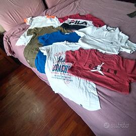Vendo 7 magliette ragazzo a maniche corte di varie Marche (Sun68, Fila, Calvino Klein, Jordan) taglia 14 anni. Tenute e conservate bene, usate poche volte. Vendo maglietta singola ad 4 Euro tutte insieme ad Euro 20.