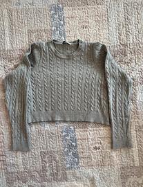 Maglione corto grigio chiaro, con fantasia ad intreccio. Usato poche volte, ottime condizioni. Stradivarius. Taglia S.