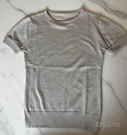 Elegante maglioncino a mezze maniche. - Dettaglio bottoni sulle maniche. - Tessuto leggermente scintillante.