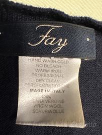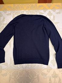 Maglioncino blu, taglia M in lana, come da etichetta. Con scollo a V piuttosto profondo