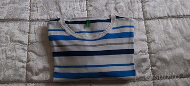 Vendo bellissimo maglioncino mezza stagione in cotone marca Benetton. Taglia M. Colore bianco righe blu/azzurro. Come nuovo.