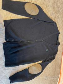 Magliomcino uomo blu Fred Perry - pira lana con toppe scamosciate ai gomiti -taglia S larghezza spalle cm 38 - lunghezza cm 60-