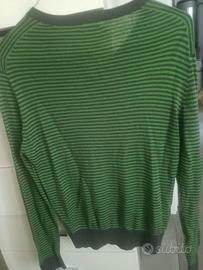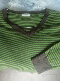 Maglioncino in leggero cashmere della Benetton come nuovo a righe verde acceso e verde militare , come nuovo misura S unisex