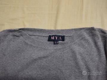 maglioncino donna 80%cotone 15% viscosa 5% elasten colore grigio chiaro costine strette collo a barchetta marca Mya(Upim)