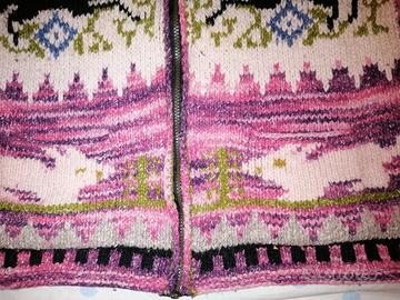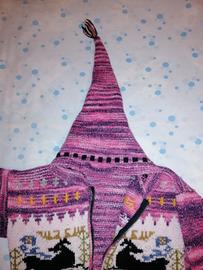 Maglioncino in lana con cappuccio e cerniera. Taglia 42. Larghezza spalle 56cm. Circonferenza seno 108cm. Lunghezza 60cm.