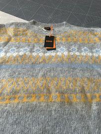 Vendo splendido maglione BOSS grigio con fantasia jacquard nei toni del giallo e azzurro.