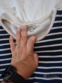 vendo questo maglioncino della cache cache taglia S a righe bianco e blu felpata all'interno larghezza spalle 35cm lunghezza 53cm lunghezza manica 59cm in perfette condizioni